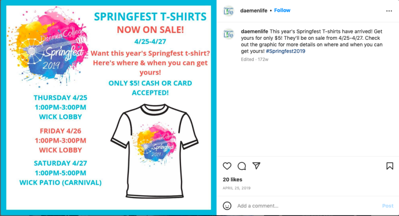 The design was chosen for their 2019 Springfest Merch and Advertising.